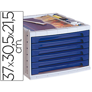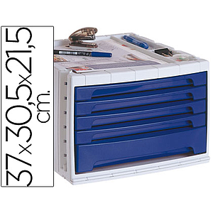 Q-CONNECT - FICHERO CAJONES DE SOBREMESA 37X30,5X21,5 CM BANDEJA ORGANIZADORA SUPERIOR 5 CAJONES AZUL OPACO (Ref.KF18424)