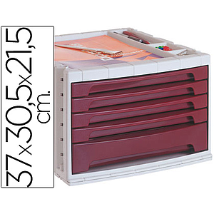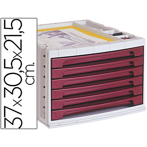 Q-CONNECT - FICHERO CAJONES DE SOBREMESA 37X30,5X21,5 CM BANDEJA ORGANIZADORA SUPERIOR 5 CAJONES BURDEOS OPACO (Ref.KF18426)