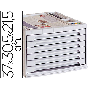 Q-CONNECT - FICHERO CAJONES DE SOBREMESA 37X30,5X21,5 CM BANDEJA ORGANIZADORA SUPERIOR 6 CAJONES GRIS OPACO (Ref.KF18434)