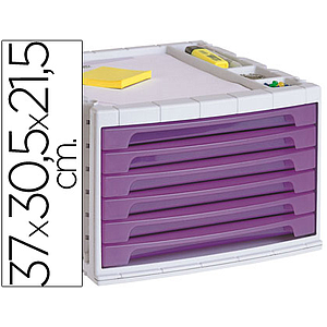 LIDERPAPEL - FICHERO CAJONES DE SOBREMESA Q-CONNECT 37X30,5X21,5 CM BANDEJA ORGANIZADORA SUPERIOR 6 CAJONES VIOLETA TRANSLUCIDO (Ref.FM17)