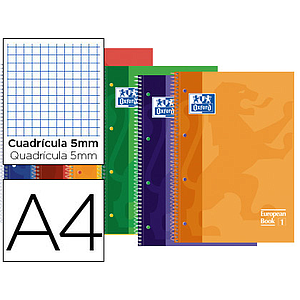 OXFORD - BLOC ESPIRAL TAPA EXTRADURA MICROPERFORADO DIN A4 80 HOJAS CUADROS 5MM COLORES SURTIDOS (Ref.100430543)