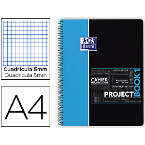 OXFORD - BLOC ESPIRAL TAPA PLASTICO MICROPERFORADO PROJECTBOOK1 DIN A4 80 HOJAS 90 GR CUADROS 5 MM AZUL APP (Ref.400043525)