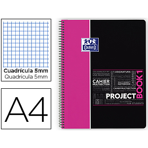 OXFORD - BLOC ESPIRAL TAPA PLASTICO MICROPERFORADO PROJECTBOOK1 DIN A4 80 HOJAS 90 GR CUADROS 5 MM ROSA APP (Ref.400043527)