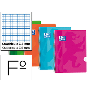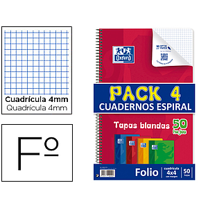 OXFORD - BLOC ESPIRAL TAPA FLEXIBLE OPTIK PAPER FOLIO 50 HOJAS 90 GR CUADROS 4 MM PACK DE 4 (Ref.400027270)
