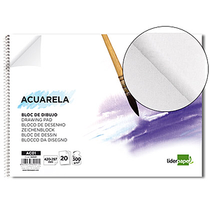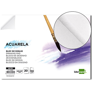 LIDERPAPEL - BLOC DIBUJO ACUARELA ENCOLADO 297X420MM 20 HOJAS 300G M2 SIN RECUADRO (Ref.AC01)