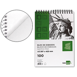 LIDERPAPEL - BLOC DIBUJO ESBOZOS ESPIRAL A3 297X420MM 100 HOJAS 90G/M2 SIN RECUADRO (Ref.DL06)