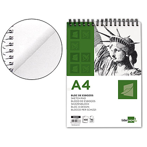 LIDERPAPEL - BLOC DIBUJO ESBOZOS ESPIRAL DIN A4 210X297MM 100 HOJAS 90G/M2 SIN RECUADRO (Ref.DE04)