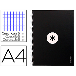ANTARTIK - Cuaderno espiral liderpapel A4 micro tapa forrada 80h 90 gr cuadro 5mm 1 banda 4 taladros negro (Ref. KB18)