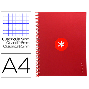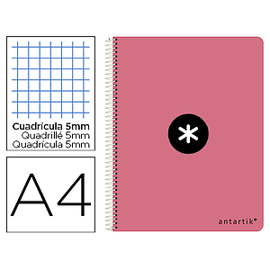 ANTARTIK - Cuaderno espiral liderpapel A4 micro tapa forrada 80h 90 gr cuadro 5mm 1 banda 4 taladros frambuesa (Ref. KB19)