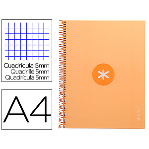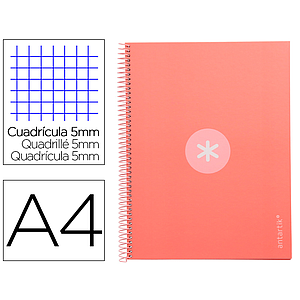 ANTARTIK - Cuaderno espiral liderpapel A4 micro tapa dura 80 h 100 gr cuadro 5mm sin bandas 4 taladros color coral (Ref. KB02)