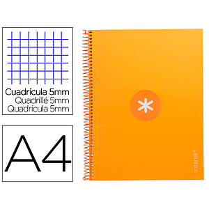 ANTARTIK - Cuaderno espiral liderpapel A4 micro tapa forrada 80h 90 gr cuadro 5mm 1 banda 4 taladros amarillo cl (Ref. KB20)