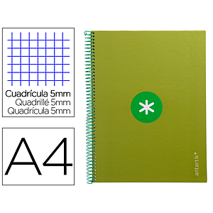 ANTARTIK - Cuaderno espiral liderpapel A4 micro tapa forrada 80h 90 gr cuadro 5mm 1 banda 4 taladros verde (Ref. KB22)