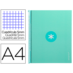 ANTARTIK - Cuaderno espiral liderpapel A4 micro tapa dura 80h 100 gr cuadro 5mm sin bandas 4 taladros color menta (Ref. KB01)