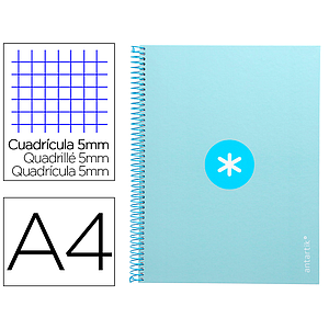ANTARTIK - Cuaderno espiral liderpapel A4 micro tapa forrada 80h 90 gr cuadro 5mm 1 banda 4 taladros celeste (Ref. KB25)