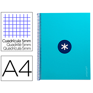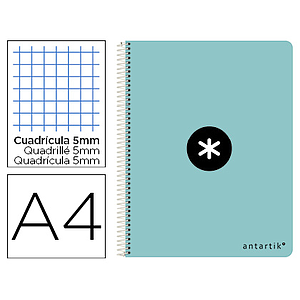 ANTARTIK - Cuaderno espiral liderpapel A4 micro tapa forrada 80h 90 gr cuadro 5mm 1 banda 4 taladros turquesa (Ref. KB26)