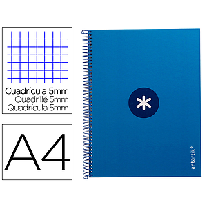 ANTARTIK - Cuaderno espiral liderpapel A4 micro tapa forrada 80h 90 gr cuadro 5mm 1 banda 4 taladros azul oscuro (Ref. KB27)
