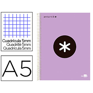 ANTARTIK - Cuaderno espiral liderpapel a5 micro tapa forrada120h 100 gr cuadro 5mm 5 banda6 taladros color lavanda (Ref. BA77)