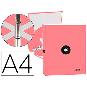 ANTARTIK - Carpeta liderpapel A4 forrada 4 anillas 25 mm redondas color coral (Ref. KA52)