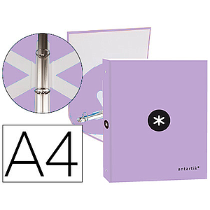 ANTARTIK - Carpeta liderpapel A4 forrada 4 anillas 25 mm redondas color lavanda (Ref. KA53)