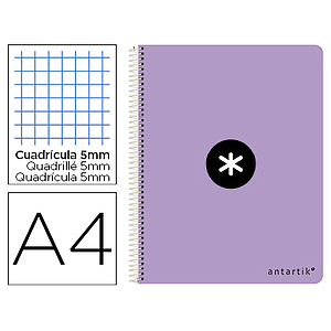 ANTARTIK - Cuaderno espiral liderpapel A4 micro tapa dura 80h 100 gr cuadro 5 mm sin bandas 4 taladros color lavanda (Ref. KB03)