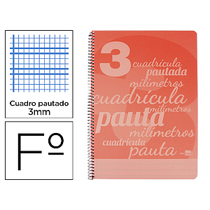 LIDERPAPEL - Cuaderno espiral folio pautaguia tapa plastico 80h 75gr cuadro pautado 3mm con margen color rojo (Ref. BE34)