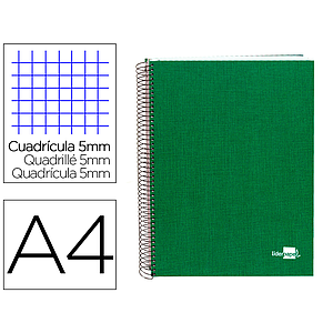 LIDERPAPEL - CUADERNO ESPIRAL A4 MICRO PAPERCOAT TAPA FORRADA 140H 75 GR CUADRO5MM 5 BANDAS 4 TALADROS VERDE (Ref.BA36)