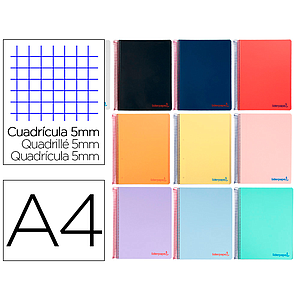 LIDERPAPEL - CUADERNO ESPIRAL A4 WONDER TAPA PLASTICO 80H 90GR CUADRO 5MM CON MARGEN COLORES SURTIDOS (Ref.TH68)