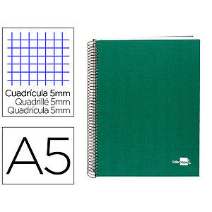 LIDERPAPEL - CUADERNO ESPIRAL A5 MICRO PAPERCOAT TAPA FORRADA 140H 75 GR CUADRO5MM 5 BANDAS 6 TALADROS VERDE (Ref.BJ27)