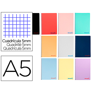 LIDERPAPEL - CUADERNO ESPIRAL A5 WONDER TAPA PLASTICO 80H 90GR CUADRO 5MM CON MARGEN COLORES SURTIDOS (Ref.TH69)
