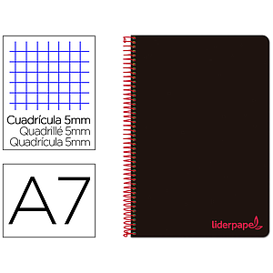 LIDERPAPEL - CUADERNO ESPIRAL A7 MICRO WONDER TAPA PLASTICO 100H 90 GR CUADRO 5MM 4 BANDAS COLOR NEGRO (Ref.BG17)