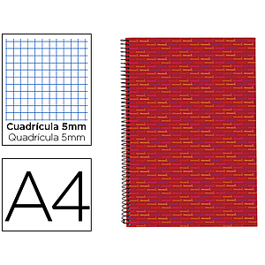 LIDERPAPEL - CUADERNO ESPIRAL A4 MICRO MULTILIDER TAPA FORRADA 140H 70G CUADRO 5MM 5 BANDAS 4 TALADROS ROJO (Ref.BA06)