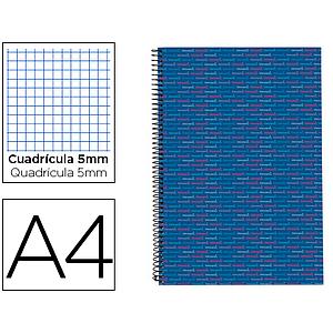 LIDERPAPEL - CUADERNO ESPIRAL A4 MICRO MULTILIDER TAPA FORRADA 140H 80 GR CUADRO 5MM 5 BANDAS 4 TALADROS AZUL (Ref.BA05)