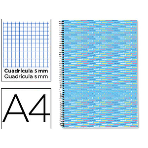 LIDERPAPEL - CUADERNO ESPIRAL A4 MICRO MULTILIDER TAPA FORRADA 140H 80 GR CUADRO 5MM 5 BANDAS 4 TALADROS CELESTE (Ref.BA57)