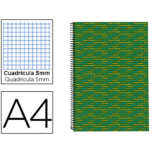 LIDERPAPEL - CUADERNO ESPIRAL A4 MICRO MULTILIDER TAPA FORRADA 140H 80 GR CUADRO 5MM 5 BANDAS 4 TALADROS VERDE (Ref.BA07)