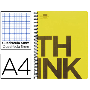 LIDERPAPEL - CUADERNO ESPIRAL A4 MICRO THINK TAPA PLASTICO 140H 80 GR CUADRO 5MM 5 BANDAS 4 TALADROS AMARILLO (Ref.BA20)