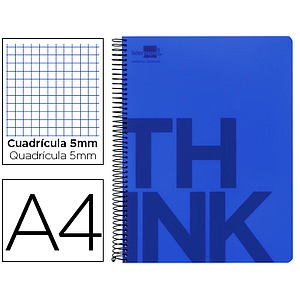 LIDERPAPEL - CUADERNO ESPIRAL A4 MICRO THINK TAPA PLASTICO 140H 80 GR CUADRO 5MM 5 BANDAS 4 TALADROS AZUL (Ref.BA15)