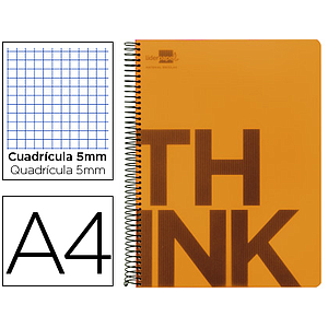 LIDERPAPEL - CUADERNO ESPIRAL A4 MICRO THINK TAPA PLASTICO 140H 80 GR CUADRO 5MM 5 BANDAS 4 TALADROS NARANJA (Ref.BA18)