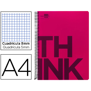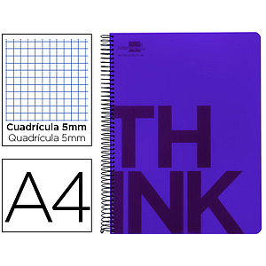 LIDERPAPEL - CUADERNO ESPIRAL A4 MICRO THINK TAPA PLASTICO 140H 80 GR CUADRO 5MM 5 BANDAS 4 TALADROS VIOLETA (Ref.BA19)