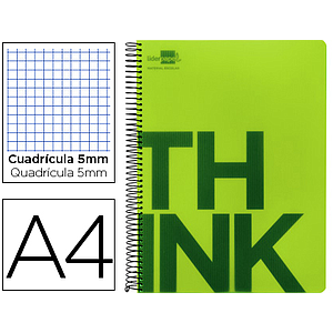 LIDERPAPEL - CUADERNO ESPIRAL A4 MICRO THINK TAPA PLASTICO 140H 80 GR CUADRO 5MM 5 BANDAS 4 TALADROS VERDE (Ref.BA17)