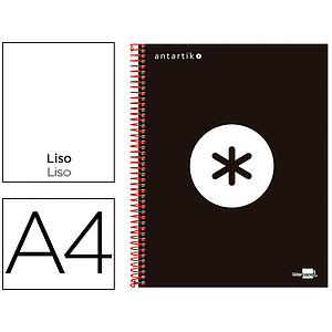 ANTARTIK - CUADERNO ESPIRAL LIDERPAPEL A4 MICRO TAPA FORRADA 120H 100 GR LISO CON BANDAS 4 TALADROS COLOR NEGRO (Ref.KD50)