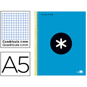 ANTARTIK - CUADERNO ESPIRAL LIDERPAPEL A5 MICRO TAPA FORRADA 120H 100 GR CUADRO5MM 5 BANDAS 6 TALADROS COLOR AZUL (Ref.KD31)