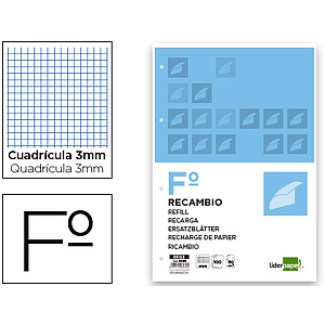 LIDERPAPEL - RECAMBIO CUARTO PAUTAGUIA 100 HOJAS 70 G CUADRICULADO PAUTADO 3 MM CON MARGEN 6 TALADROS (Ref.RC16)