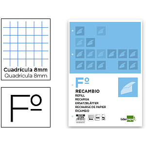 LIDERPAPEL - RECAMBIO FOLIO 100 HOJAS 60G/M2MILIMETRADO SIN MARGEN 4 TALADROS (Ref.RF09)