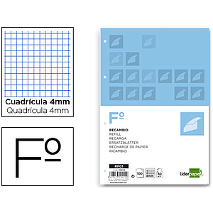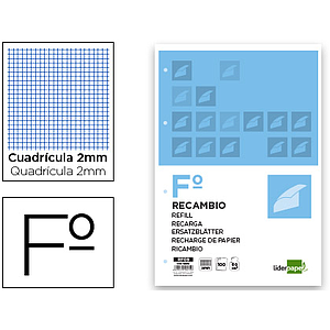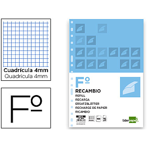 LIDERPAPEL - RECAMBIO FOLIO 100 HOJAS 60G/M2CUADRO 4MM CON MARGEN 4 TALADROS (Ref.RF01)