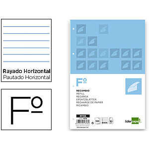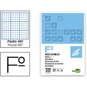 LIDERPAPEL - RECAMBIO FOLIO 100 HOJAS 60G/M2RAYADO Nº46 4 TALADROS (Ref.RF22)