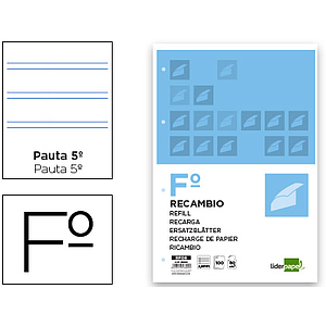 LIDERPAPEL - RECAMBIO FOLIO 100 HOJAS 60G/M2 PAUTA 5ª 2.5MM CON MARGEN 16 TALADROS (Ref.RF13)