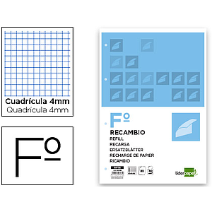 LIDERPAPEL - RECAMBIO FOLIO 80 H 4TF-01-8 CUADRO 4 MM 4 TALADROS CON MARGEN (Ref.RF16)