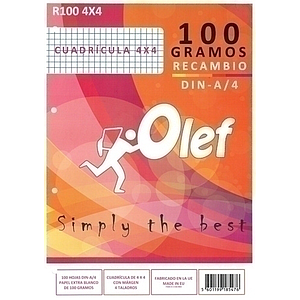 OLEF - RECAMBIO A4 100h 100gr 4 TALADROS CUADRIC.4x4 (Ref.R1004X4)