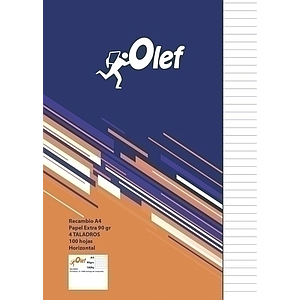 OLEF - RECAMBIO A4 100h 90gr 4 TALADROS HORIZONTAL (Ref.RAC90HZ)