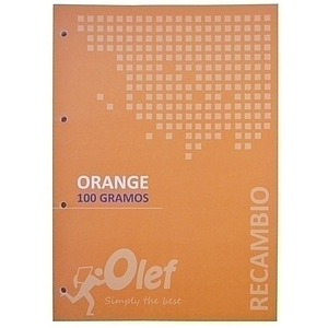 OLEF - RECAMBIO A4 80h 100gr 4 TALADROS CUADRIC.5x5 NARANJA (Ref.R100NAR)